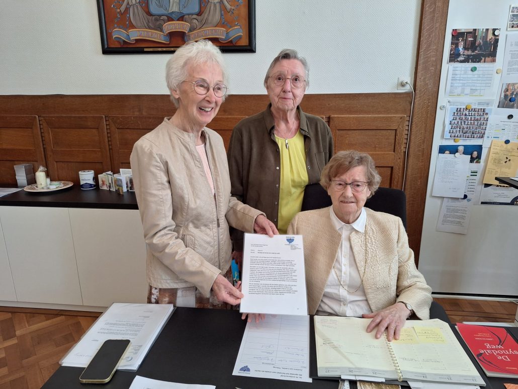 “Demonstreren met een spandoek hebben we ooit gedaan, maar dat kunnen we niet meer gezien onze hoge leeftijd. Maar een handtekening zetten, dat lukt nog zeker wel!” Met dat als uitgangspunt, hebben de Zusters van Liefde een brief aan de regering en de Tweede Kamer opgesteld met een dringende oproep om alles te doen wat goed is voor vrede en recht in de wereld. Citaat: “Bij dezen vragen wij u, bestuurders van ons land, om bij al uw politieke besluiten en keuzes, bij al uw relaties, contacten en onderhandelingen dringend uw handelen door ethische motieven te laten bepalen.” De brief wordt ondertekend door zusters én door leden van andere congregaties en ordes in Tilburg en omstreken. Zo wordt het een soort van kettingbrief. Daarna gaat de brief met verzamelde handtekeningen naar Den Haag. Een deuk in een pakje boter? Nietsdoen was geen optie meer.