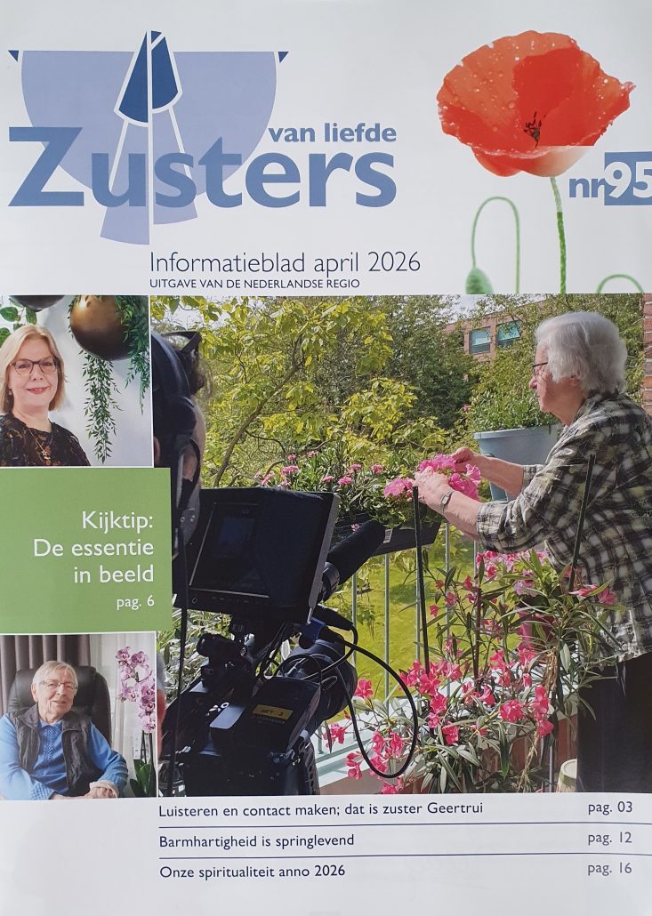 Het aprilnummer van het blad Zusters is deze week verschenen. Met verhalen over zusters, over medewerkers, bondgenoten en onze spiritualiteit. Ook worden in dit nummer vijf nieuwe, korte films met zusters aangekondigd. De films geven een beeld van hoe de zusters – intussen op hoge leeftijd – omgaan met enkele kernwaarden van de congregatie. U kunt ze via onderstaande links bekijken!